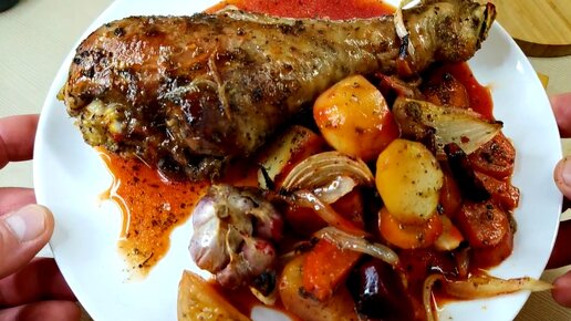 Незамысловатое блюдо из голени индейки и простых овощей покорило наш аппетит, съели с наслаждением, делюсь рецептом