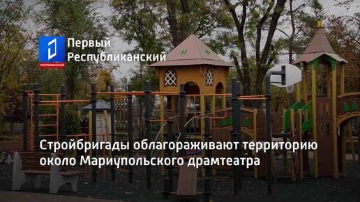 Стройбригады облагораживают территорию около Мариупольского драмтеатра