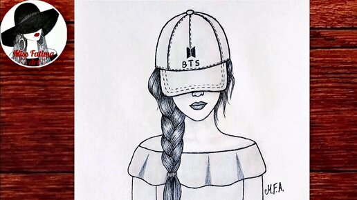 Как нарисовать Девушку в кепке BTS. Рисунок Карандашом. BTS рисунок #bts