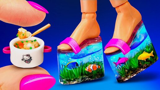 14 идей Барби для смешного видео с куклами: Аквариумная обувь, телефон-кролик и многое другое