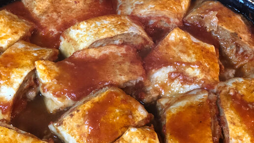 Рулеты из лаваша и фарша в томатном соусе