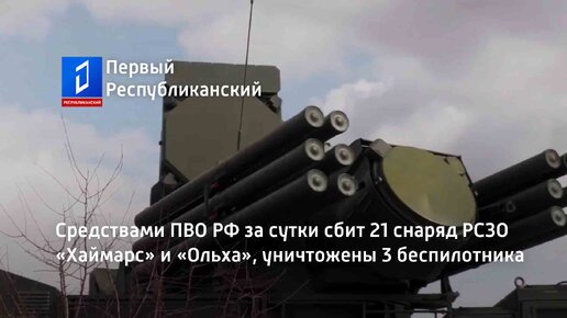 Средствами ПВО РФ за сутки сбит 21 снаряд РСЗО «Хаймарс» и «Ольха», уничтожены 3 беспилотника