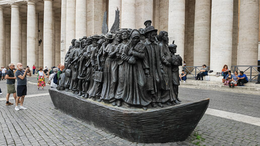 Что означает этот современный памятник на площади Сан-Пьетро: евреи, индейцы и другие народности все вместе в одной лодке, рассказываю...