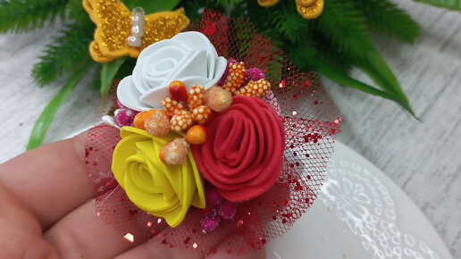 Розы из фоамирана / Заколка Резинка Цветы из фоамирана своими руками / Подробный мастер - класс