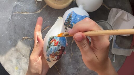 Декупаж и роспись елочных шаров по мотивам советских открыток