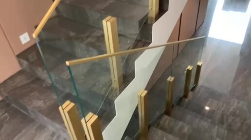 Перила из стекла на золотых мини стойках производство СтаирсПром-Москва