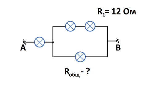 Вспоминаем, как рассчитывать общее сопротивление цепи.