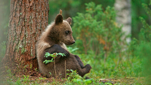В Тверской области медвежонок исполнил грустную серенаду для фотоловушки.