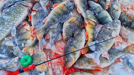 Кровавая бойня! Лифт огромных окуней! 100 штук с лунки это реально! Удачная рыбалка!