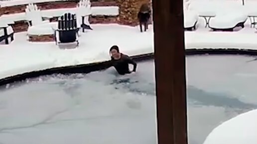 Ледяной капкан: как девушка спасала свою собаку провалившуюся под лед бассейна