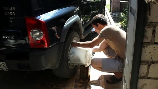 Эксперимент, Стирка одежды на колесе внедорожника ТагАЗ Тагер.