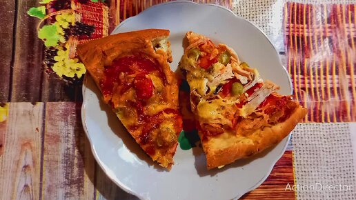 Дрожжевая пицца🍕 с куриным мясом и колбасой