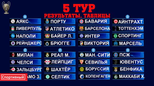 Кто в плей-офф Лиги Чемпионов Результаты. Расписание. Таблица. 5 тур.