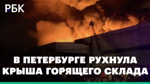 Пожар на складе в Петербурге локализован на площади 12 тыс. кв. м. Рухнула крыша: видео