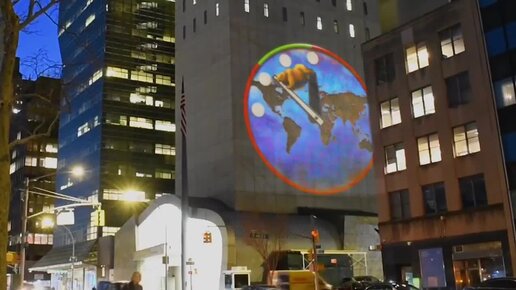 Необычную проекцию с русским медведем заметили на здании правительства США при ООН