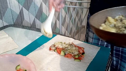 Готовлю шаверму с жаренным минтаем в сыре сулугуни и с овощным салатом