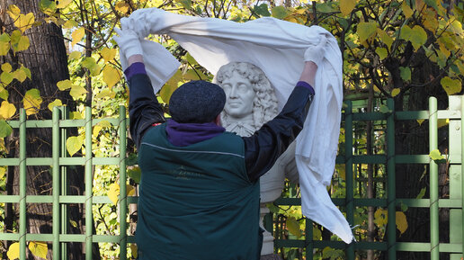 Как и зачем укрывают скульптуры Летнего сада на зиму