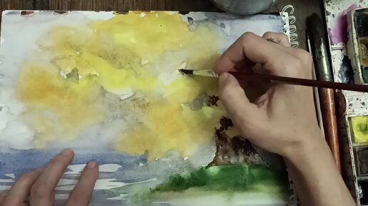 Акварель.Рисование.Осенний мотив.Дерево.Творчество.Живопись.