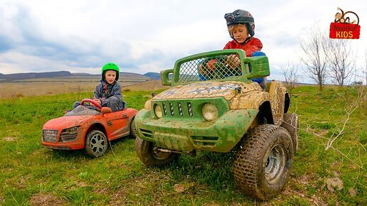 Children and Cars - cars drive in the mud.