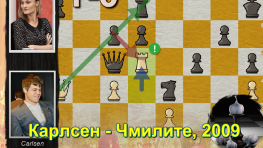 Хитроумная атака Магнуса Карлсена на тему "висячие фигуры опадают". Шахматная битва за белых в Осло, против Виктории Чмилите, 2009
