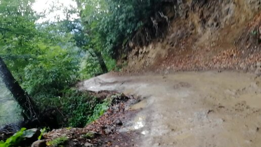 Едем на джипе по горной дороге над пропастью. Абхазия