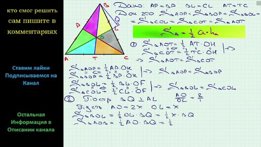 Геометрия В треугольнике проведены три медианы. Докажите, что они разбивают треугольник на шесть равновеликих треугольников