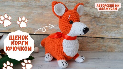 Собака Щенок Корги Амигуруми крючком с подробным описанием / Вязаная игрушка собачка из мультфильма Королевский корги / Авторский МК ВяжусАМ