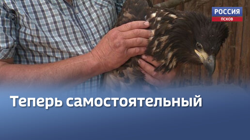 Белохвостый орлан прошел курс реабилитации в «Птичьем дворике» и теперь может самостоятельно передвигаться и добывать себе еду