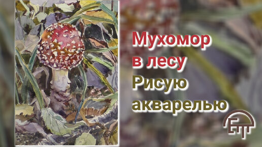 Мухомор в лесу. Рисую акварелью