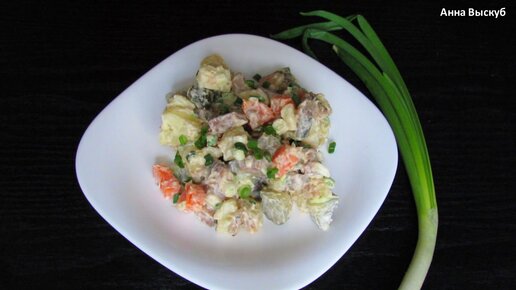 Салат проще простого с селедкой. Минимум ингредиентов, а как вкусно и недорого. Рецепт.
