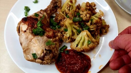 Вариант семейного ужина из обычной курицы и нечасто используемым, но от этого не менее классным гарниром из цветной капусты. Вкусно, просто