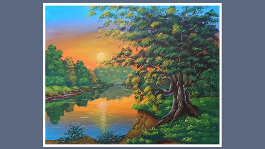Рисуем закат на берегу реки🌅 Пошаговое видео 🎥 Акриловая живопись 🎨