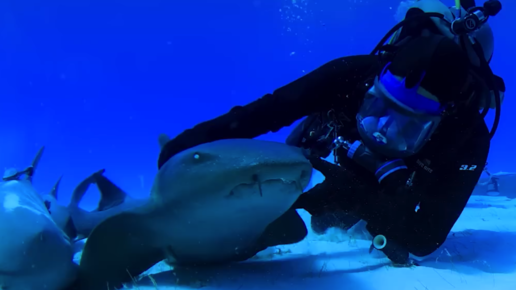 Акула регулярно приплывает к одному и тому же аквалангисту, чтобы тот её погладил