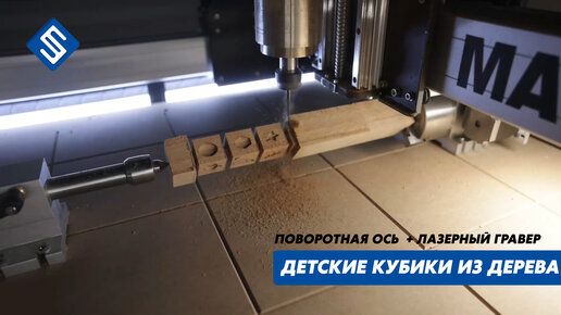 Кубики из дерева с гравировкой. Поворотная ось + лазерный гравер. Cтанки с ЧПУ. Savinsname.