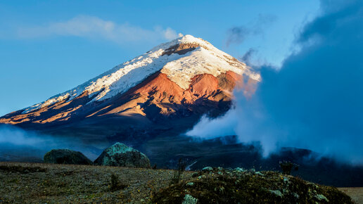 Полет над заснеженным вулканом Котопахи в Эквадоре