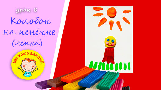 Как слепить КОЛОБКА из пластилина. УРОК 8. Тема: "колобок на пенёчке"- лепка