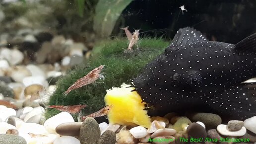 Малыши креветки не боятся сомика и пецилию