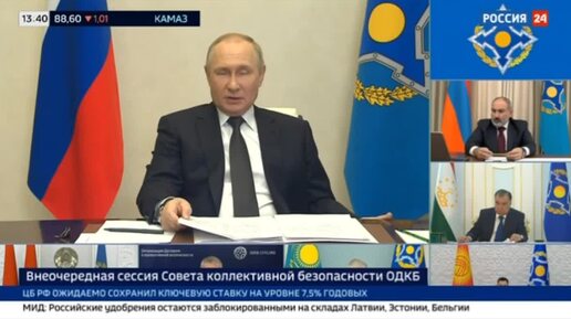 Путин по видеосвязи принял участие во внеочередной сессии Совета коллективной безопасности ОДКБ