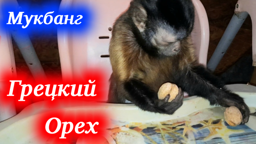 Домашняя обезьянка пытается расколоть грецкий орех! Мукбанг с капуцином.