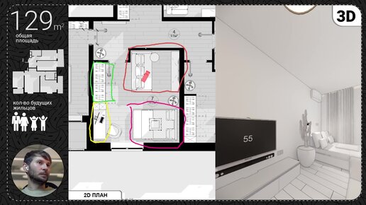 Объединение 2х квартир. Проект ПЕРЕПЛАНИРОВКИ квартиры.