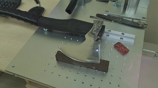 Кованый топор ручной работы с логотипом клиента. Заказывайте изделия с Вашей личной гравировкой.