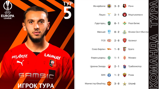 Лучшие Игроки Лига Европы 5 тур Team 5 round UEFA Europa League