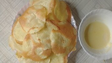 Хрустящие чесночные чипсы из картофеля и чесночный сырный соус.