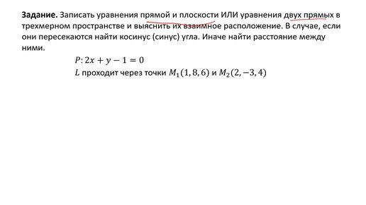Определение взаимного расположения объектов в пространстве (прямой и плоскости) (РЗ 2.6)