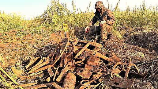 Задолбался рыть огромный сброс под бугром. Бензопила Huter BS-62 Коп металлолома Нашли пласты металла.