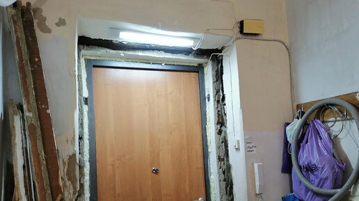 Далее: Проём входной двери, прокладка электро проводки.