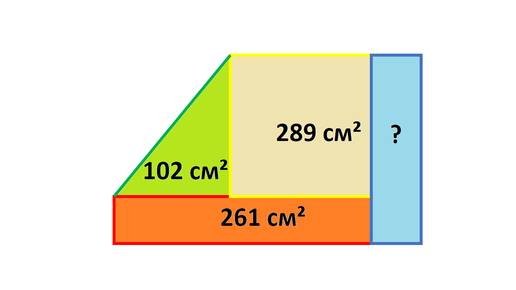 Найти площадь бокового прямоугольника если известны площади двух прямоугольников и треугольника.