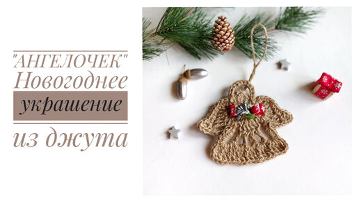 Новогодний эко декор из ДЖУТА. Вязаный РОЖДЕСТВЕНСКИЙ АНГЕЛ крючком. Елочная игрушка своими руками. Украшение на елку.