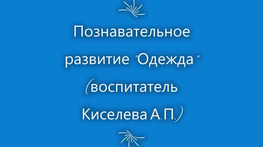 Познавательное развитие Одежда (воспитатель Киселева А. П.)
