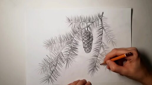 Как нарисовать еловую ветку карандашом